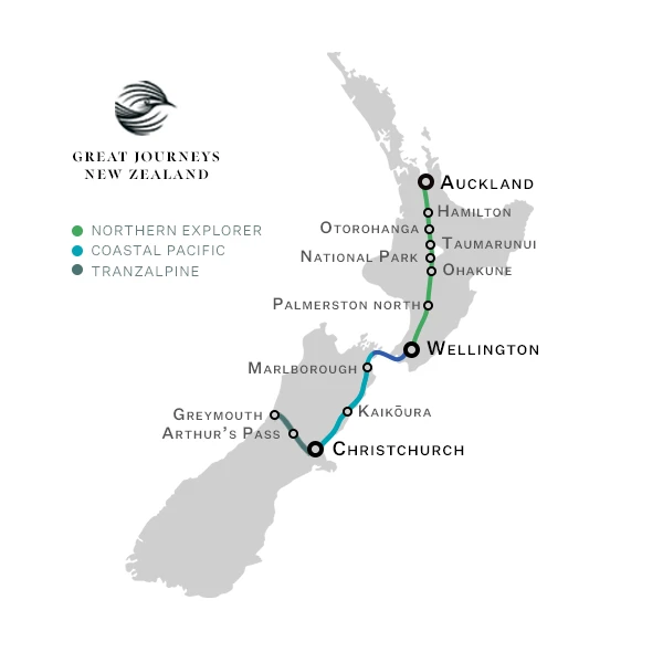 Our three scenic trains are recognised among the world's greatest rail journeys. Traverse the North Island aboard the Northern Explorer, cruise along the Kaikoura coast aboard the Coastal Pacific, or ascend the majestic Southern Alps aboard the world-famous TranzAlpine.